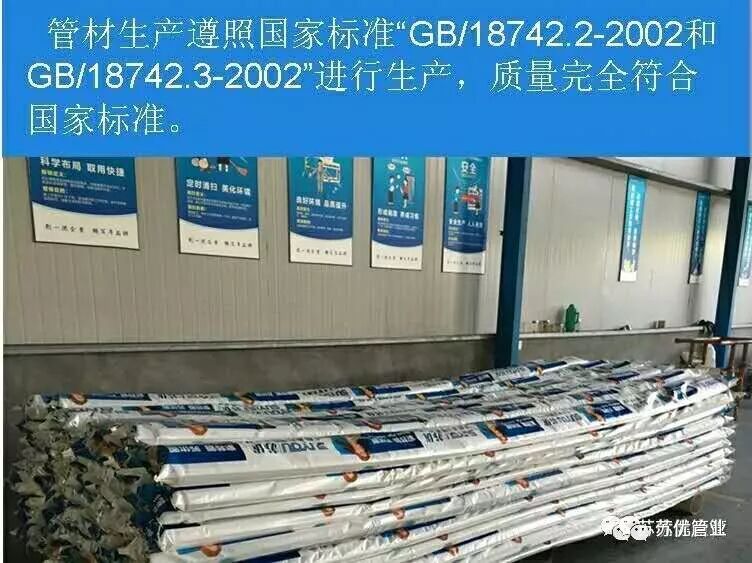 管材生產遵照此國家標準“GB/T18742.2-2002和GB/T18742.3-2002.”進行生產,質量完全(quán)符(fú)合國家標準。